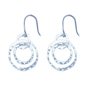 Hammered 3 Circle Dangle Earrings Quick view Hammered 3 Circle Dangle Earrings Hammered texture on 3 Circle Shape Dangle Earrings Material: .925 Sterling SilverSize: 22x27mm Now $41.99 Add to Cart