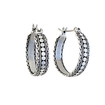 Bali Dot Leaverback Hoop Earrings Quick view Bali Dot Leaverback Hoop Earrings Bali Hoop Earrings with a Braided and Dot design in Sterling Silver Material: .925 Sterling Silver Now $49.99 Add to Cart